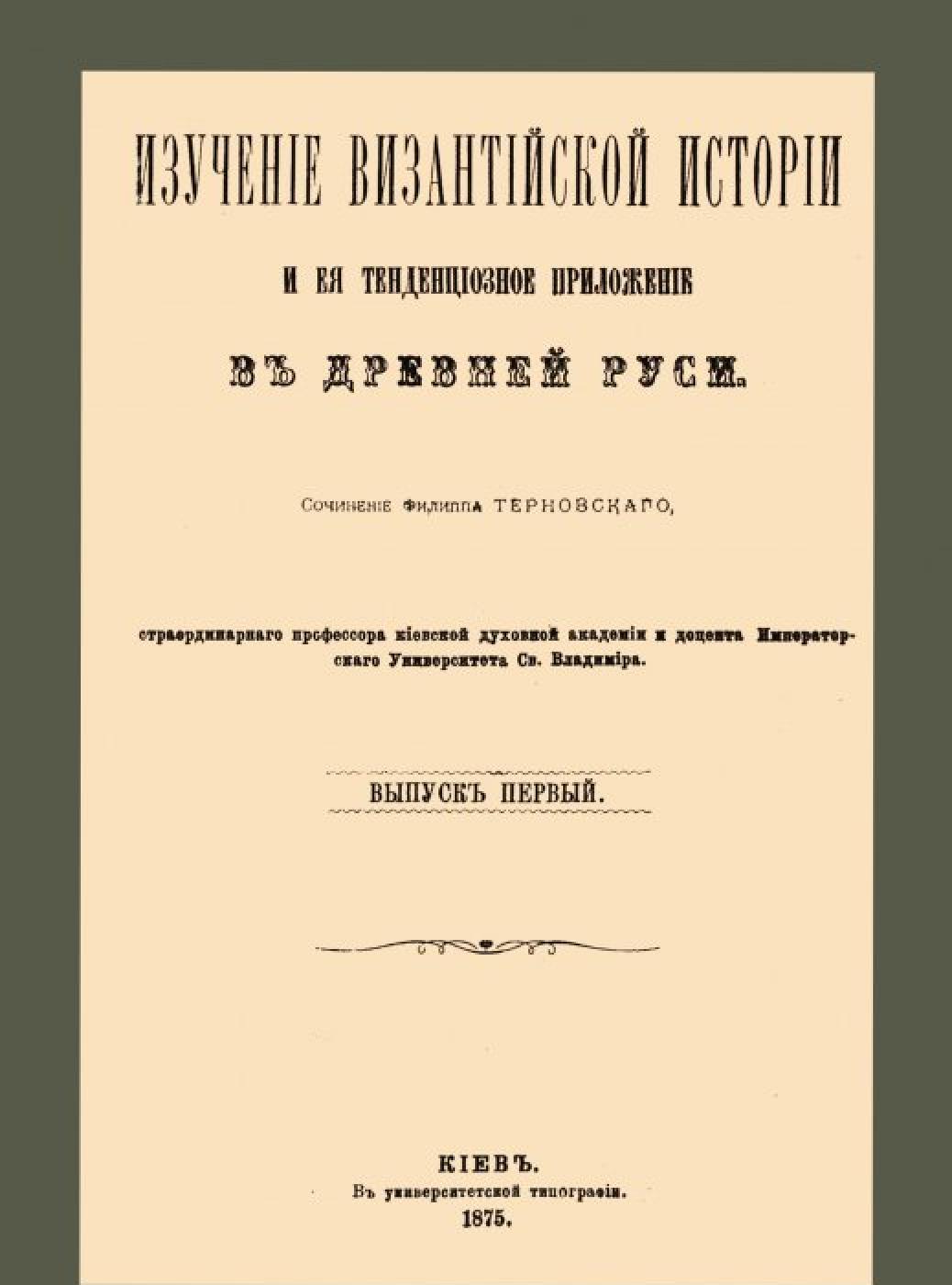 Оригінал друкованого документа зберігається в НБУ ім. Ярослава Мудрого: Терновский Ф. Изучение византийской истории и ее тенденциозное приложение в Древней Руси. Вып. 1 / соч. Филиппа Терновскаго. — Киев : Тип. ун-та, 1875. — II, 214 с.