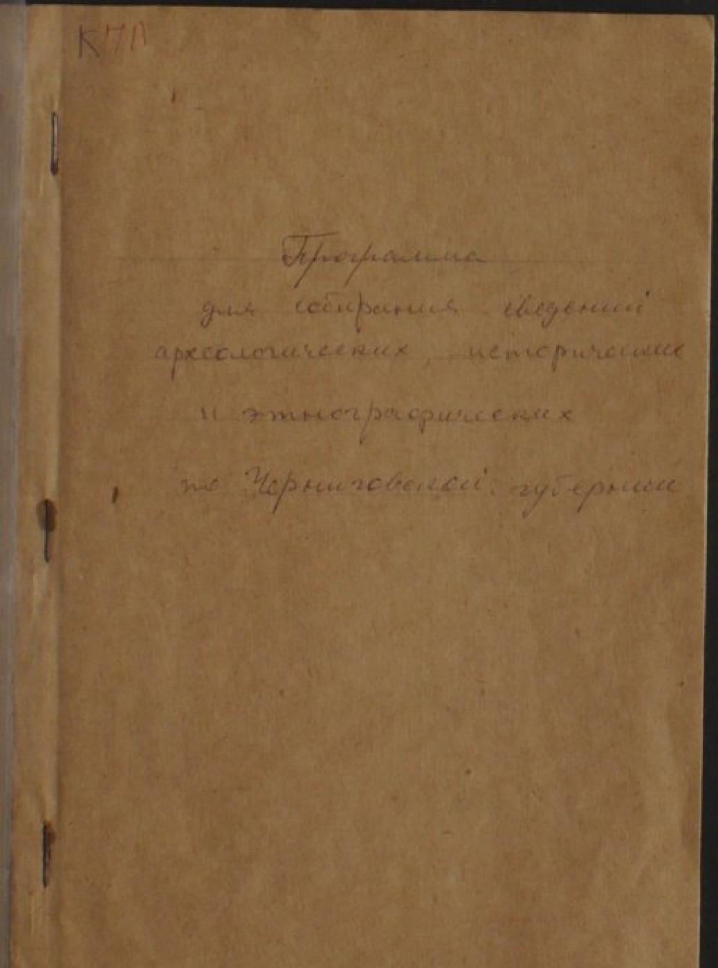 Оригінал друкованого документа зберігається в НБУ ім. Ярослава Мудрого: Программа для собирания сведений археологических, исторических, этнографических по Черниговской губернии. — Чернигов : Тип. Губер. Правления, 1903. – 35 с.