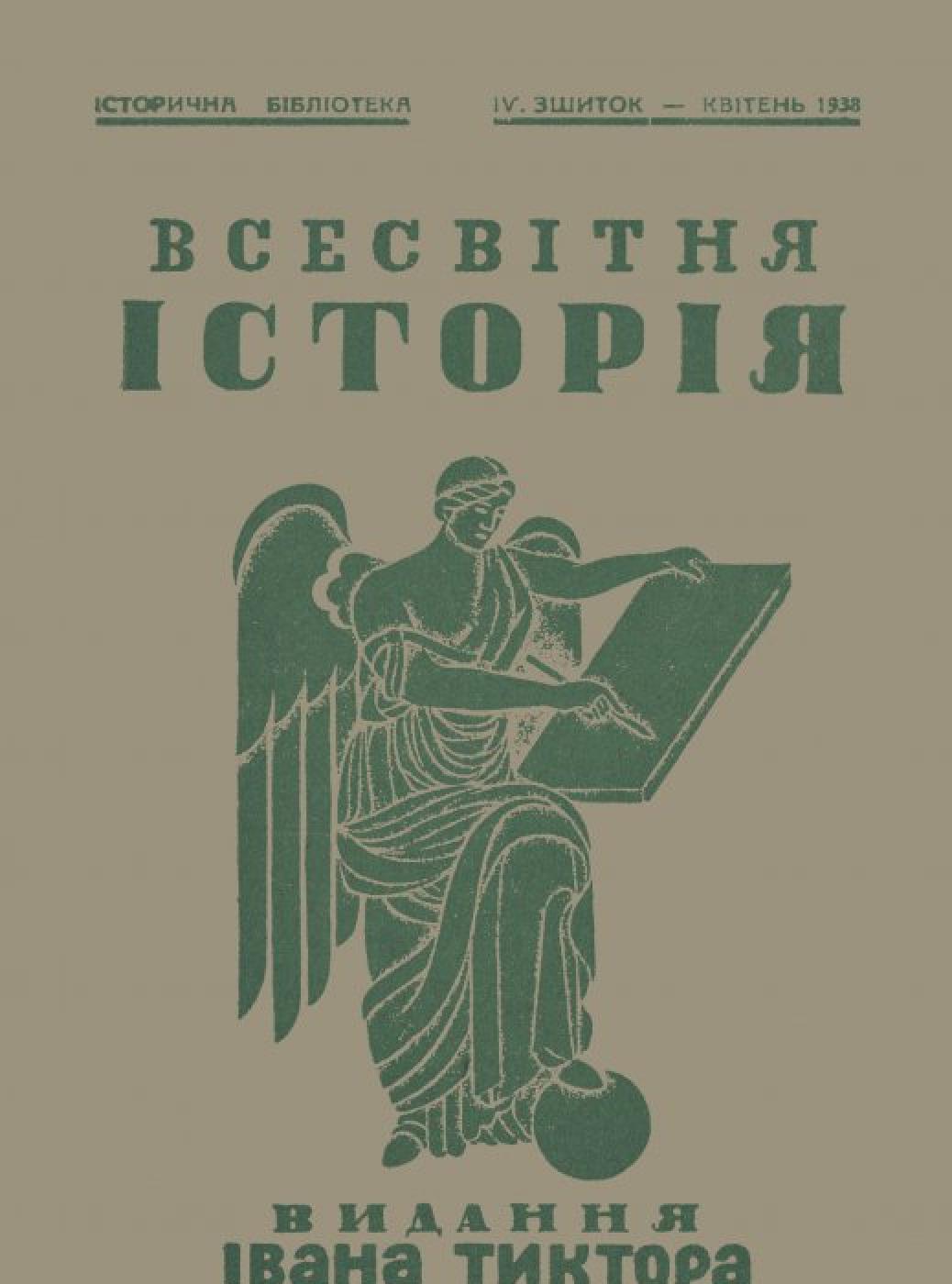 Всесвітня історія [Електронна копія] / під заг. ред. І. Крип’якевича. Львів : Вид. Івана Тиктора, 1938 (Київ : НБУ ім. Ярослава Мудрого). (Історична бібліотека). № 4 : Зшиток – квітень. Електрон. текст. дані (1 файл : 35,8 Мб). 1938 (Київ: НБУ ім. Ярослава Мудрого, 2021).