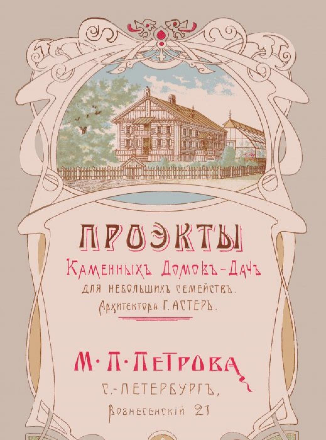Астер, Георг. Проекты каменных домов-дач для небольших семейств [Електронна копія] : 12 проектов каменных дач в различных стилях : пер. с нем. / [соч.] Георга Астеръ. Электрон. текст. дан. (1 файл : 17,9 Мб). СПб. : Изд. М. П. Петрова, 1904 (Київ: НБУ ім. Ярослава Мудрого, 2022).