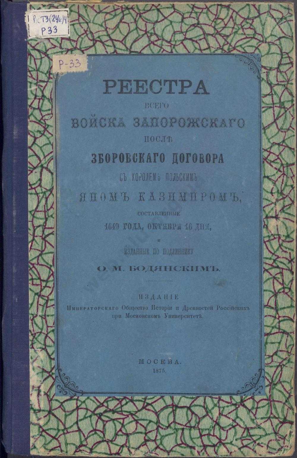 О. М. Бородянский. Реестр всего Войска Запорожского после зборовского договора с королем польским Яном Казимиром