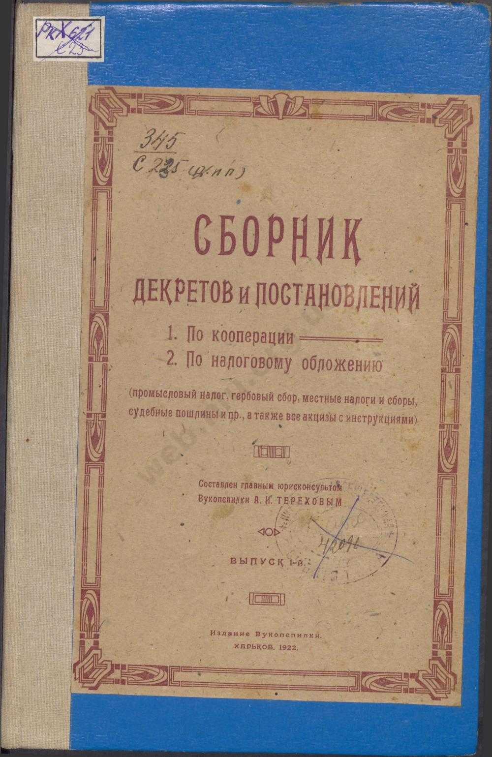 А. И. Терехов. Сборник декретов и постановлений по кооперации и налоговому обложению