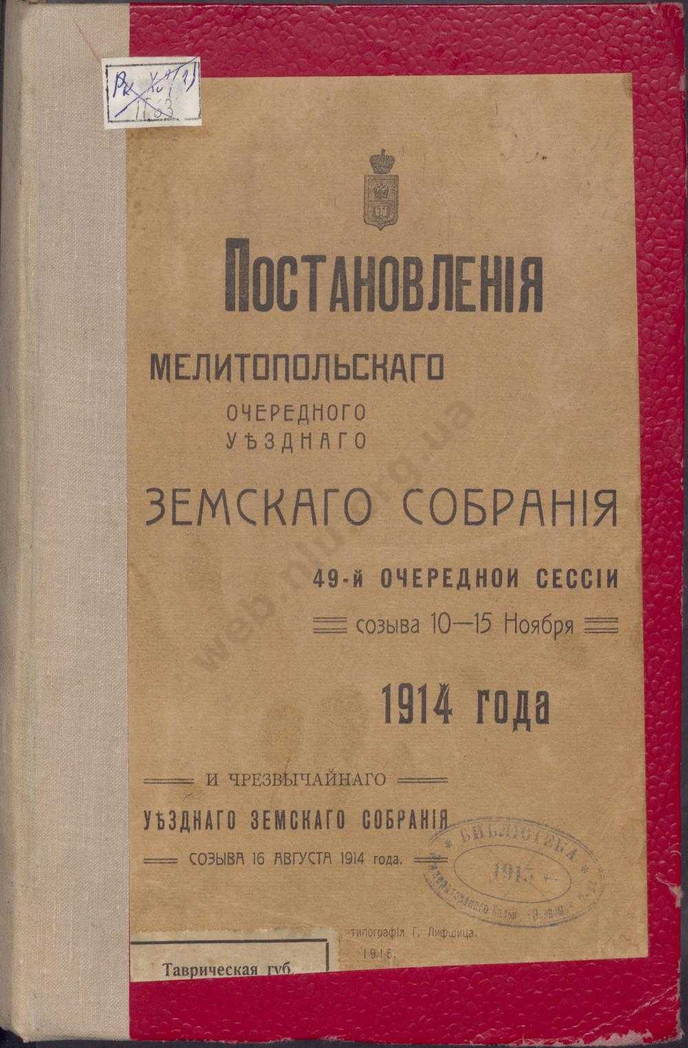 Постановления Мелитопольського очередного уездного земского собрания 49-й очередной сессии созыва 10-15 ноября 1914 года