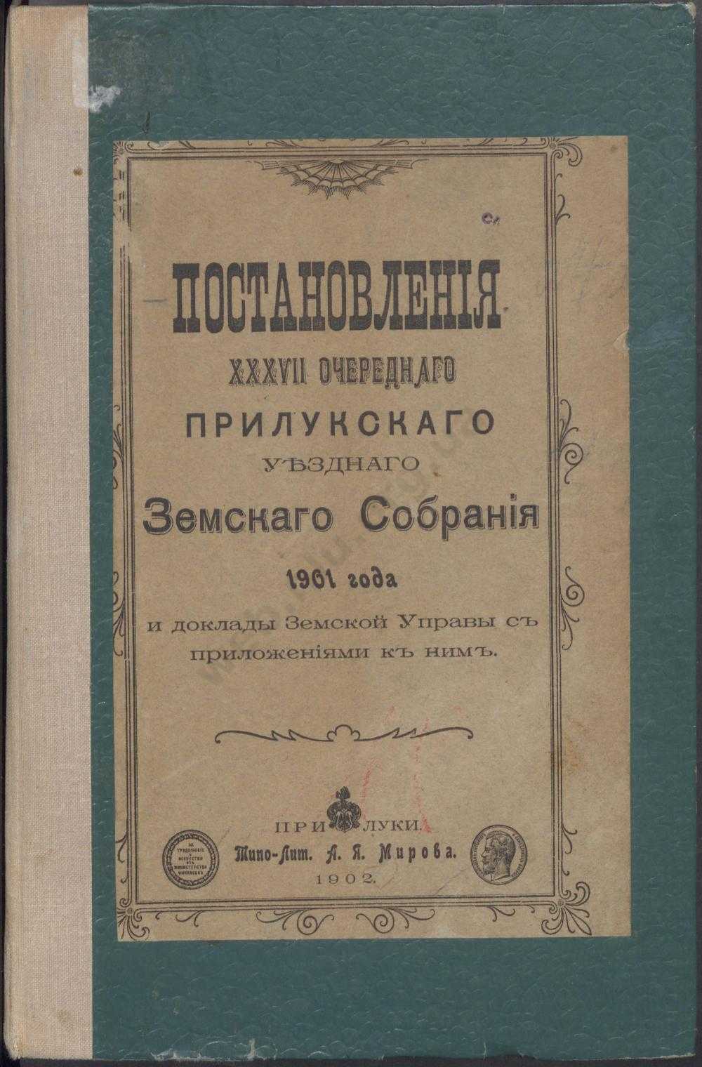 Постановления XXXVII очередного Прилукского уездного земского собрания 1901 года