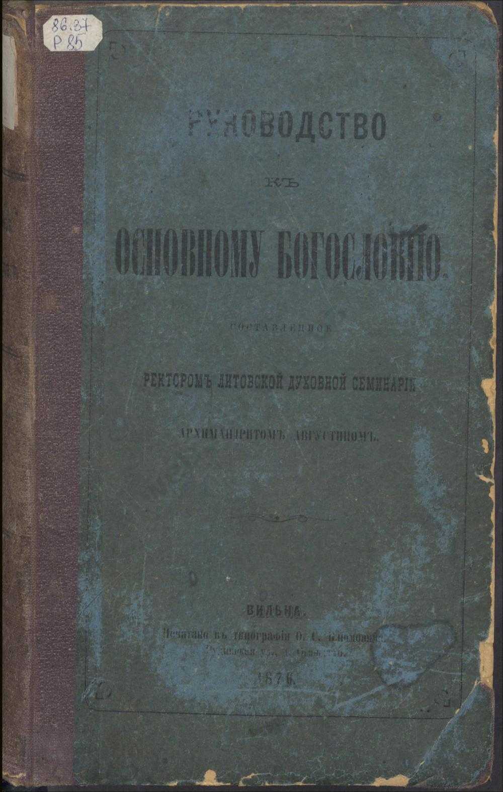 Руководство к основному Богословию, составленное ректором литовской духовной семинарии Архимандритом Августином