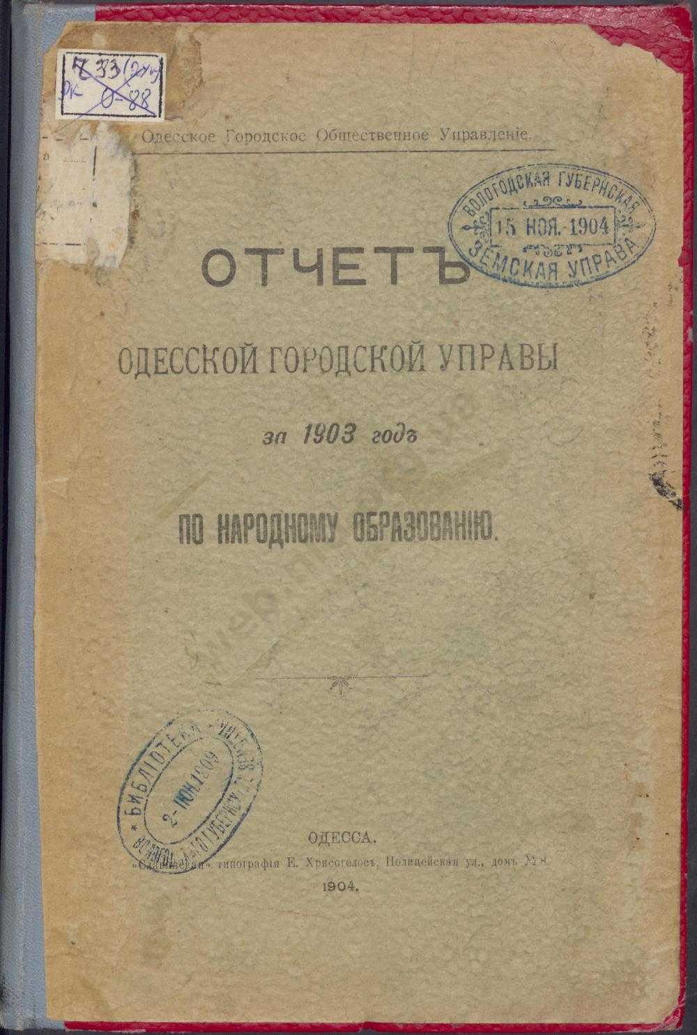 Отчет одесской городской управы за 1903 год по народному образованию